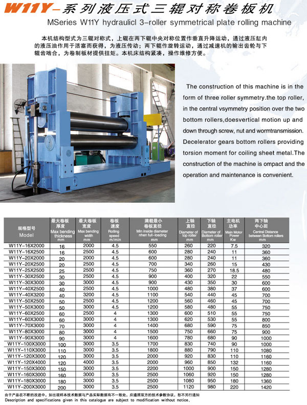 W11Y-液壓式三輥對稱卷板機